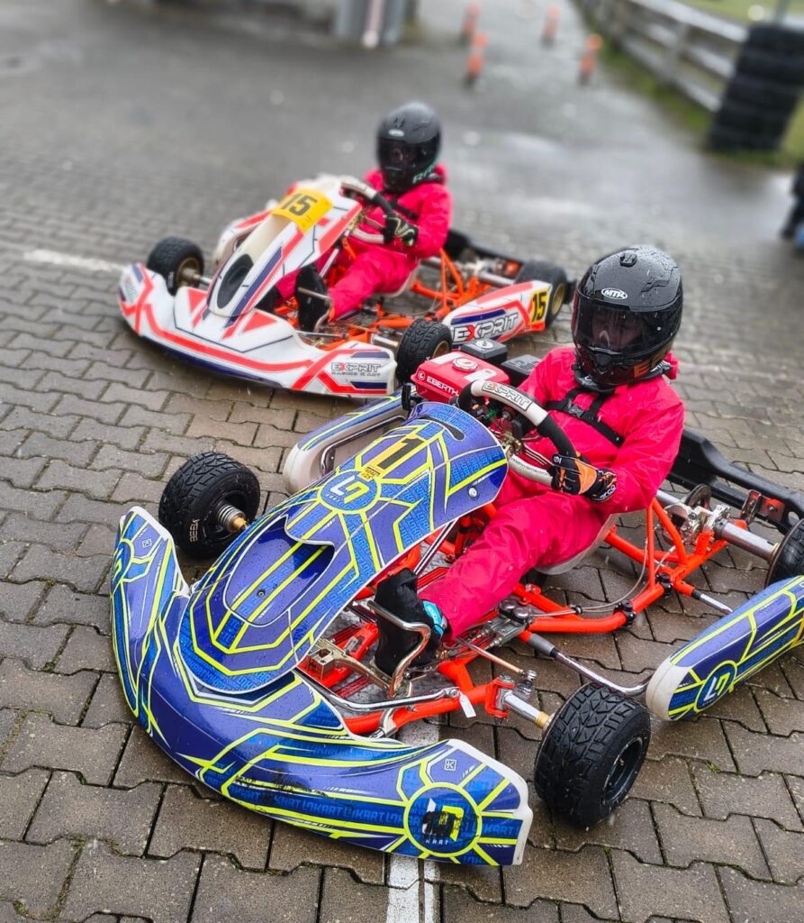 Trotz Schnee und Regen am Samstag- und Frost am Sonntagmorgen, wurde der Zeitplan strikt eingehalten. Allgemeine Einweisung, Flaggenkunde, Fahrerbesprechung und mit dem Kart trainieren und einstellen standen am ersten Morgen auf dem Programm, welches am zweiten Tag durch Test von Rennszenarien (Warm up Runde, Formation Lap und Start) ergänzt wurde. Natürlich wurde auch viel Sport zur Körperertüchtigung gemacht. Raik und Erik, die das zum ersten Mal erlebten, hatten viel Spaß, auch wenn sie mit widrigen Bedingungen zu kämpfen hatten. Dominik, Elissa und Antonia ließen es entspannt angehen, da es ja noch um nichts ging. Dem mit 33 TeilnehmerInnen besetzten Starterfeld forderte die rutschige Fahrbahn und die Kälte die volle Konzentration ab. Erik und Elissa in der Klasse 1, Dominik und Raik in Klasse 2 und Antonia in Klasse 3 werden in der Rookies Wertung mit 5 Rennen an den Start gehen. Wir wünschen allen viel Erfolg.