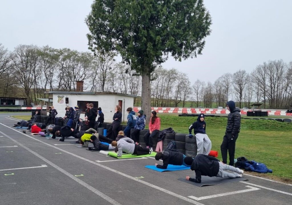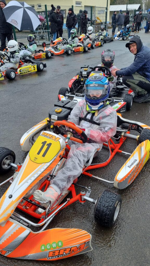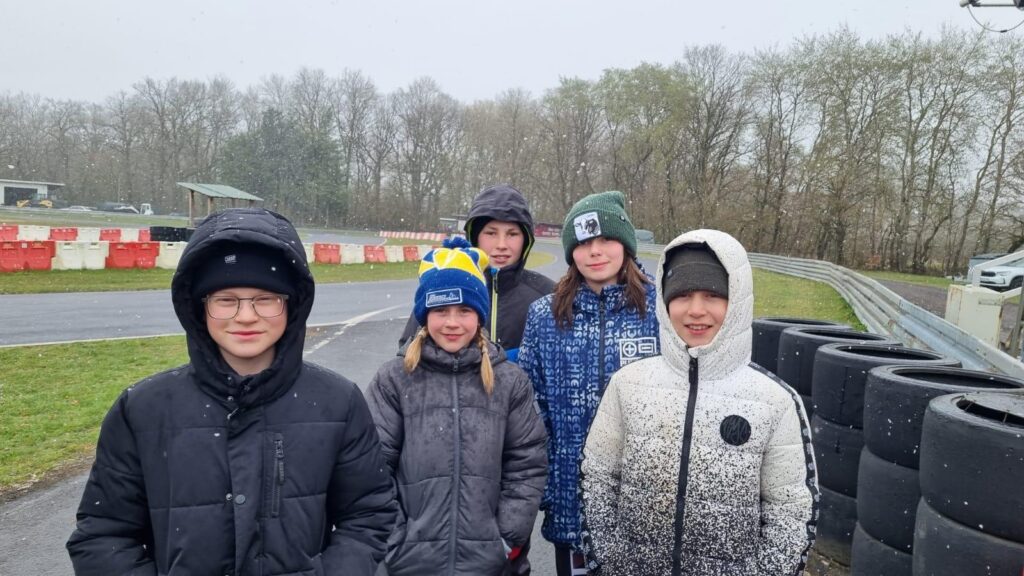 Trotz Schnee und Regen am Samstag- und Frost am Sonntagmorgen, wurde der Zeitplan strikt eingehalten. Allgemeine Einweisung, Flaggenkunde, Fahrerbesprechung und mit dem Kart trainieren und einstellen standen am ersten Morgen auf dem Programm, welches am zweiten Tag durch Test von Rennszenarien (Warm up Runde, Formation Lap und Start) ergänzt wurde. Natürlich wurde auch viel Sport zur Körperertüchtigung gemacht. Raik und Erik, die das zum ersten Mal erlebten, hatten viel Spaß, auch wenn sie mit widrigen Bedingungen zu kämpfen hatten. Dominik, Elissa und Antonia ließen es entspannt angehen, da es ja noch um nichts ging. Dem mit 33 TeilnehmerInnen besetzten Starterfeld forderte die rutschige Fahrbahn und die Kälte die volle Konzentration ab. Erik und Elissa in der Klasse 1, Dominik und Raik in Klasse 2 und Antonia in Klasse 3 werden in der Rookies Wertung mit 5 Rennen an den Start gehen. Wir wünschen allen viel Erfolg.