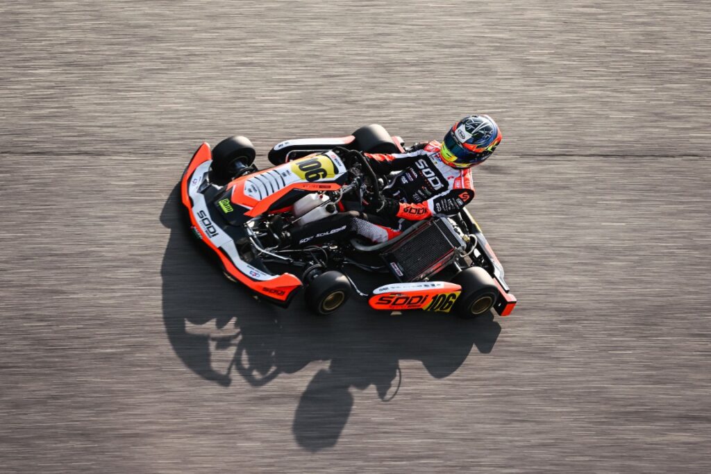Auch am Sonntag blieb der Sodi Kart-Pilot auf Titelkurs. Nach einem weiteren Sieg im Super Heat startete er das große Finale aus der ersten Reihe und übernahm in der Anfangsphase sogar die Führung. Ein intensives Duell mit dem späteren Weltmeister sorgte für Spannung bis zum Schluss. Nach 24 Runden überquerte Schleimer die Ziellinie schließlich als starker Vierter und damit erneut als bester Deutscher in einem international erstklassig besetzten Feld von 125 Fahrerinnen und Fahrern.