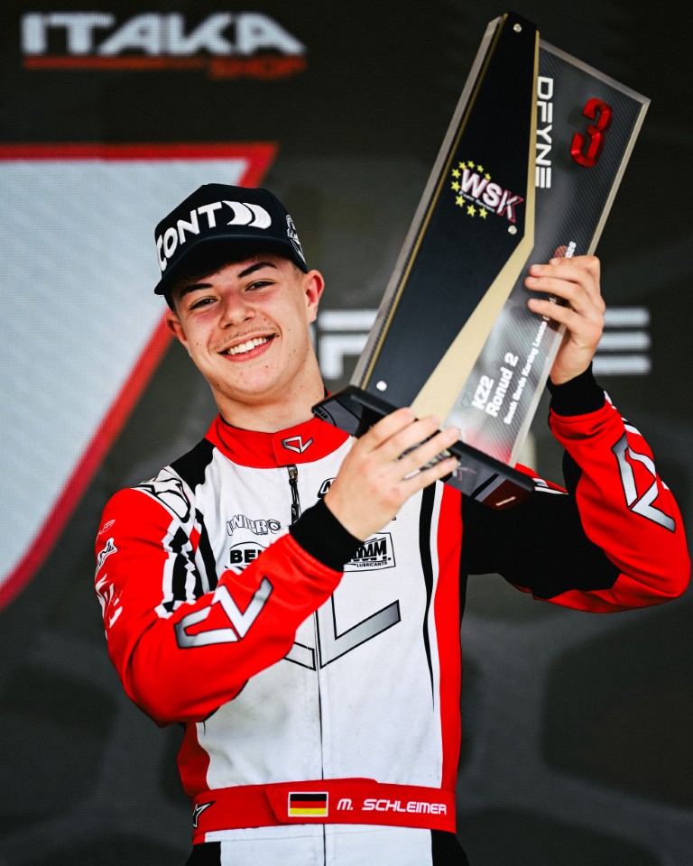 Lonato/Obertiefenbach. Maximilian Schleimer ist zurück auf dem Podium: Beim zweiten Lauf der WSK Euro Series auf dem South Garda Karting Circuit in Lonato zeigte der deutsche Schaltkart-Pilot eine starke Leistung und beendete das Wochenende in der KZ2-Klasse auf Rang drei. In einem hochkarätig besetzten Feld mit über 280 Fahrerinnen und Fahrern aus 54 Nationen setzte der 18-Jährige damit ein klares Ausrufezeichen.