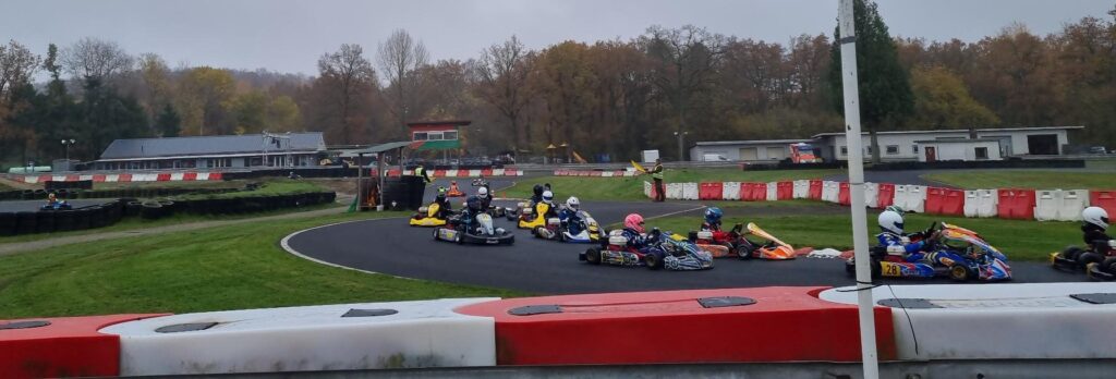 Auf der durch die Test- und Einstellfahrten bekannten Strecke in Wittgenborn wurden die beiden letzten Rennen also die Läufe 15 und 16 ausgetragen. Bei 4° und Nebel setzte kurz vor dem ersten Rennen auch noch leichter Nieselregen ein. Die spontane Entscheidung, auf Regenreifen zu wechseln, erwies sich als goldrichtig. In ihren Klassen fuhren alle weiter nach vorne: Dominik 4.; Elissa 2.; Antonia 4.; Adrian 2., wobei seine Leistung besonders hoch zu bewerten ist, da ihm Gaststarter aus der WAKC (Westdeutschen ADAC Kart Cup) und die abtrocknende Strecke das Rennen erschwerten. Ein „kleiner Unfalldreher“ warf Dominik im zweiten Rennen etwas zurück, die anderen konnten ihre Platzierungen aus dem ersten Rennen verteidigen.